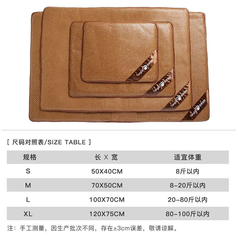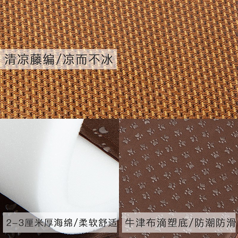 【自营时效 八仓直发】汤琪可拆洗狗狗凉席藤编猫窝狗窝夏季宠物冰垫小中大型犬狗垫子猫垫子四季通用 100*70*3 20-80斤内宠物
