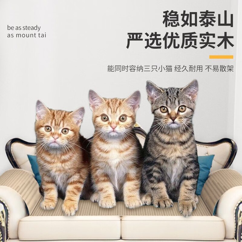 麻绳猫爬架猫窝一体大型不占地免打孔易安装实木稳固加粗跳台猫架 猫头款 (米色)