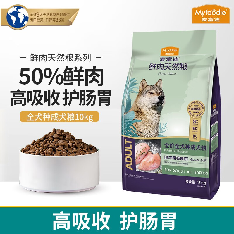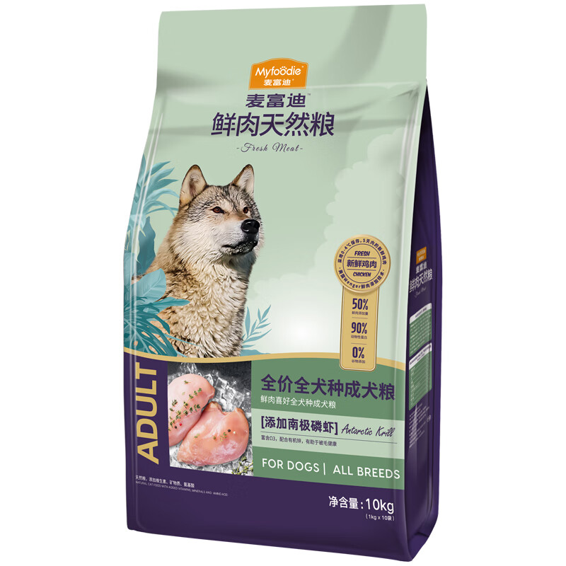 麦富迪 天然鲜肉成犬粮10kg 添加南极磷虾狗粮 鲜肉成犬粮10kg