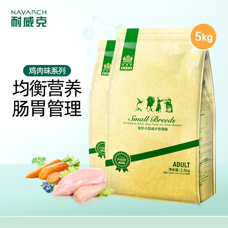 耐威克 狗粮小型犬比熊泰迪柯基博美斗牛雪耐瑞成犬5kg10斤成犬鸡肉味狗粮 小型犬成犬通用10斤(2.5kg*2袋)