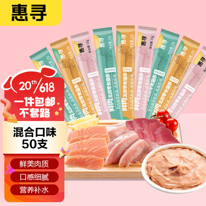 惠寻 京东自有品牌猫零食 鲜肉猫条混合口味15g*50条成猫幼猫湿粮