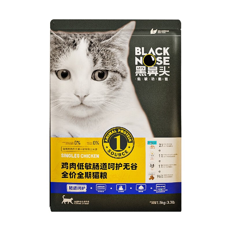黑鼻头无谷奶糕猫粮低敏12月以下幼猫家猫蓝猫布偶银渐层通用型全价 全期-肠道呵护1.5kg