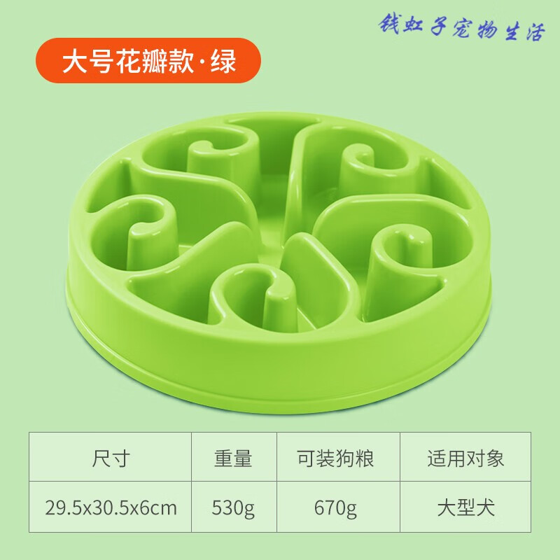 梦雷宠 狗碗防打翻狗狗慢食盆大号饭碗中大型犬拉布拉多缓食盆宠物防噎碗 大型犬绿色花朵款【670克狗粮】 小中大型狗狗慢食减肥碗