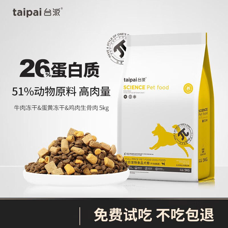 TAIPAI台派冻干狗粮通用型10斤泰迪博美柯基比熊金毛小型犬幼犬成犬专用 添加牛肉(25%) 5kg10斤