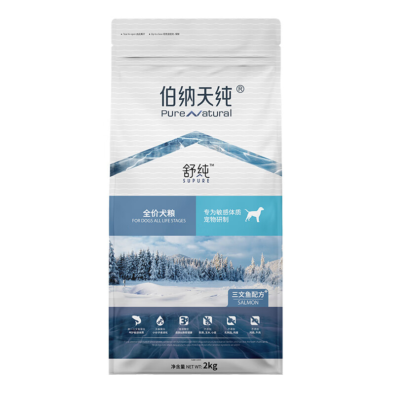 伯纳天纯低敏宠物狗粮成犬幼犬通用舒纯三文鱼配方犬粮泰迪博美主粮 低敏三文鱼味犬粮2kg