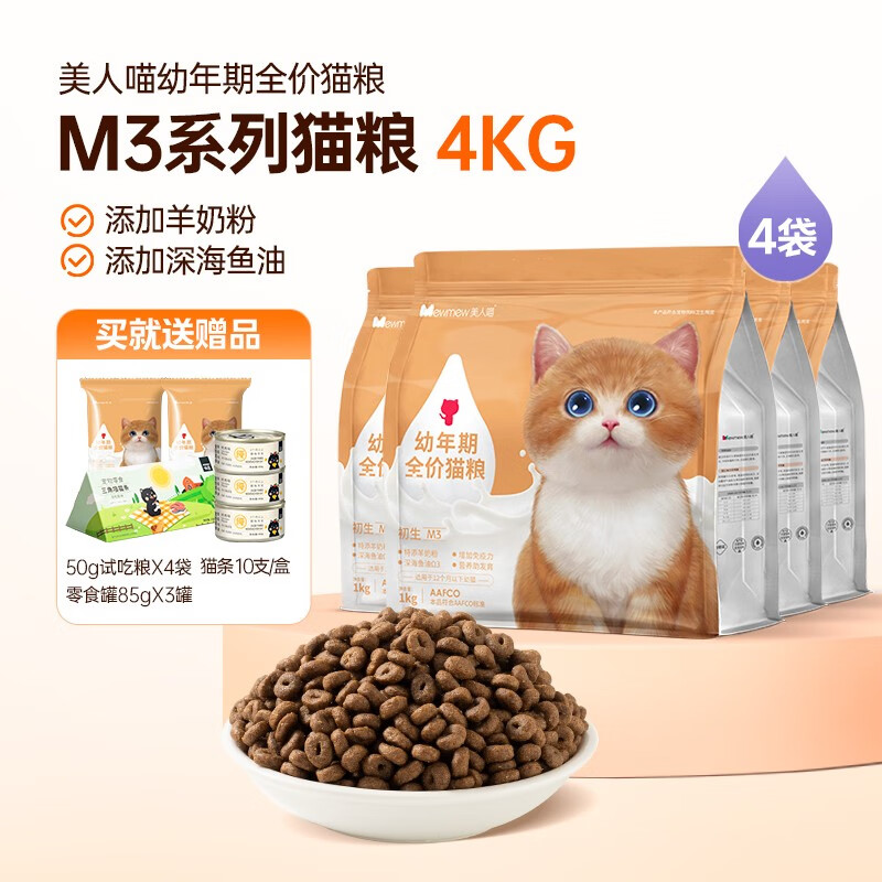美人喵猫粮幼猫1到6月小奶猫离乳猫奶糕鲜肉全价冻干猫粮【羊奶鱼油】 鲜肉幼猫粮4kg