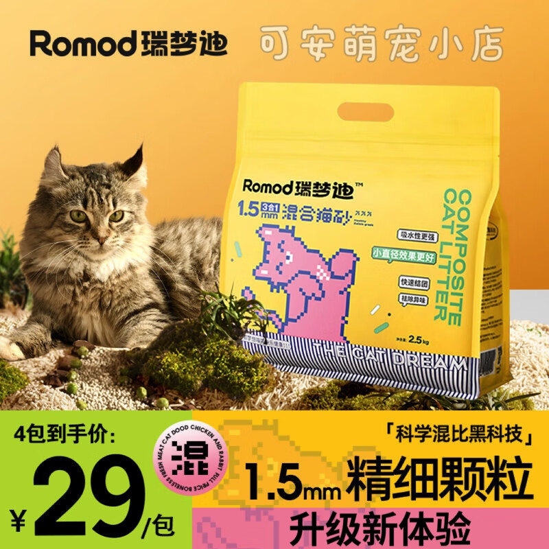 瑞梦迪猫砂3合1混合猫砂原味低尘除臭豆腐膨润土混合猫砂可冲马桶吸水 全新升级*1袋(5斤装) 奶香混合砂 1.5mm