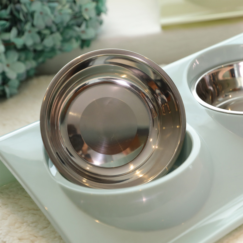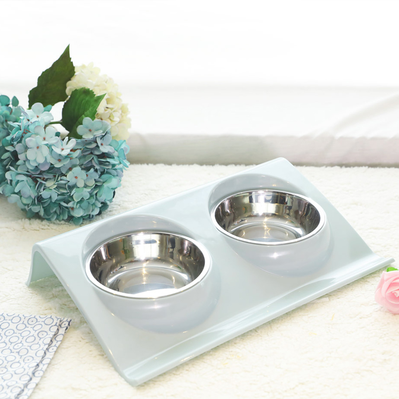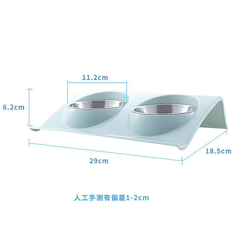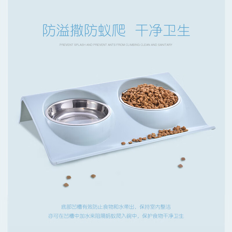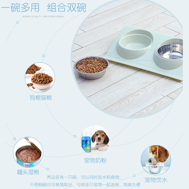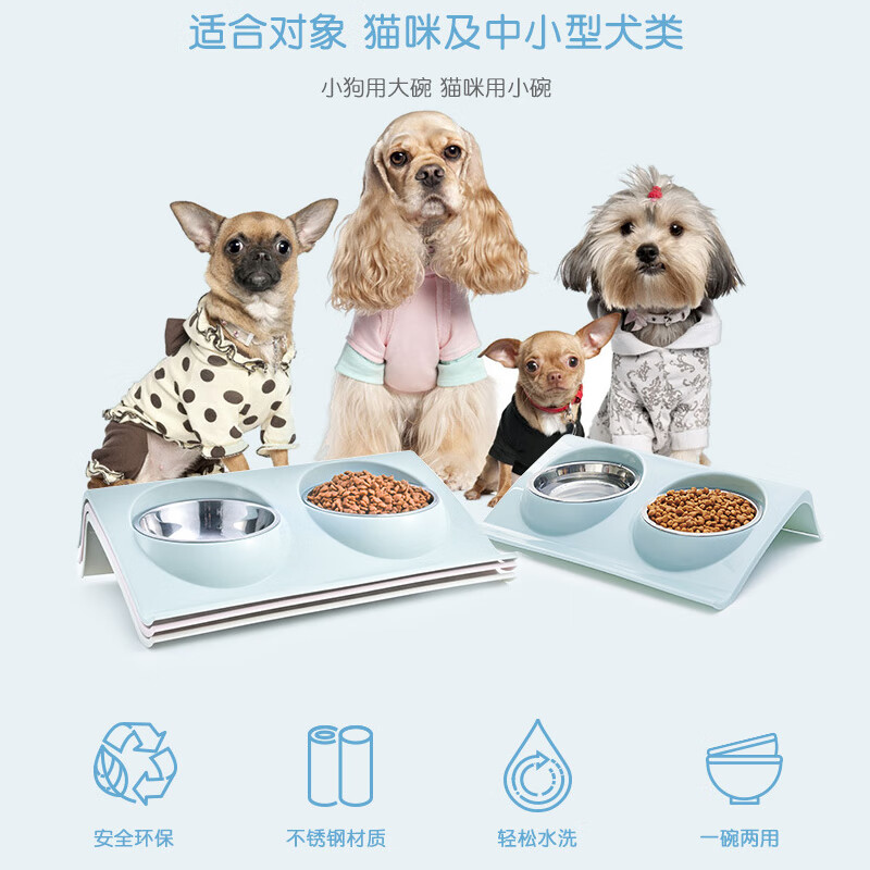 迪普尔 狗狗用品狗盆狗碗猫碗猫盆两用宠物喂食饮水双碗不锈钢新款Z型防溢撒慢食防噎碗浅蓝色