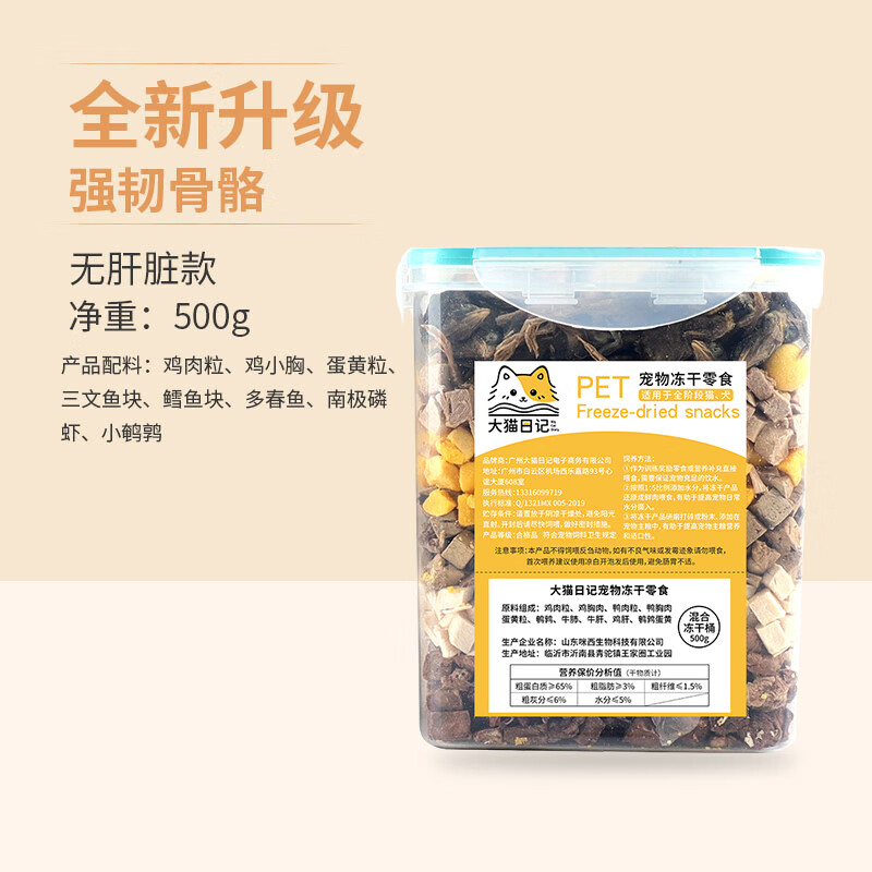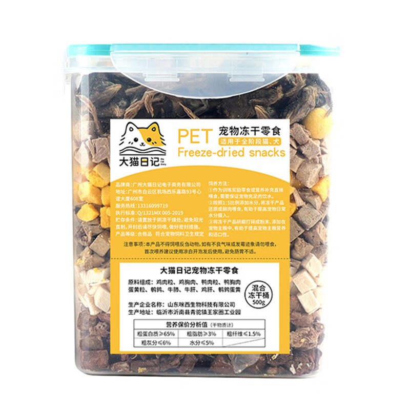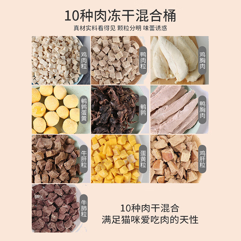大猫日记冻干猫零食鸡肉粒鸡胸肉冻干鹌鹑猫零食营养增肥发腮主食罐猫罐头 冻干混合桶(10拼)无肝脏