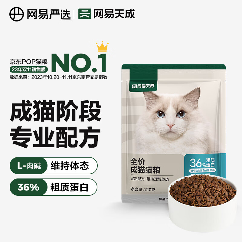 网易严选猫粮 分阶段猫粮 无谷粮深海鱼肉宠物猫主粮 全阶段成幼猫猫粮 ≥12个月|全价成猫粮试吃装120g