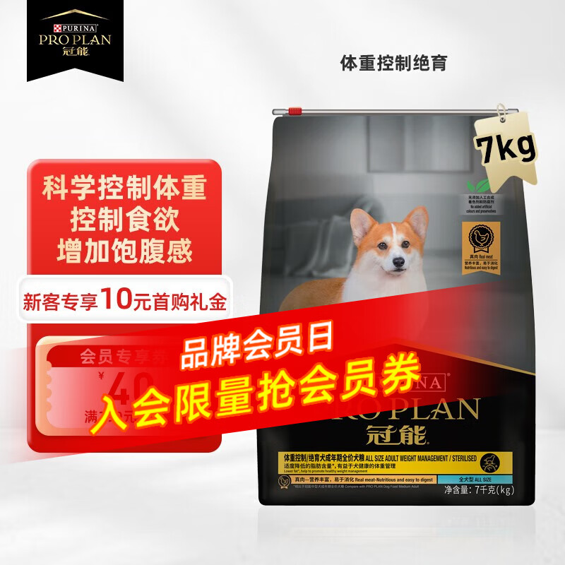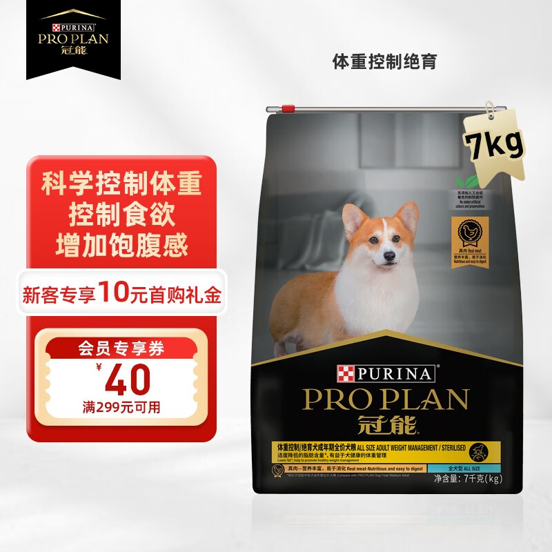 冠能狗粮体重控制绝育犬成犬高蛋白低脂肪健康减轻体重全价犬粮 体重控制绝育犬7kg