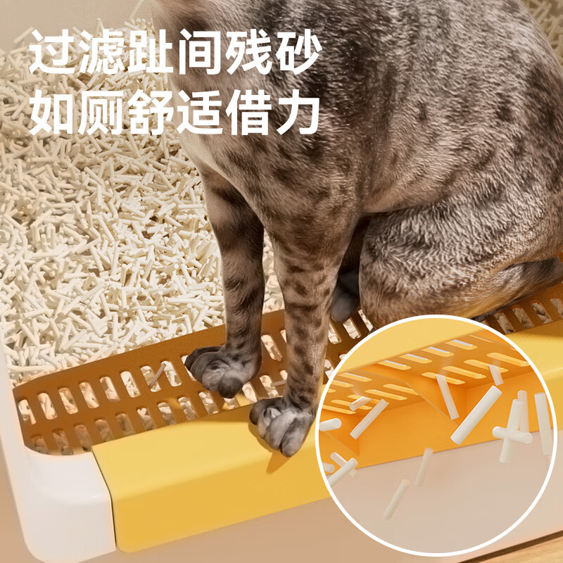 华元宠具(hoopet)猫砂盆特大号开放式巨型猫沙盆防外溅加大加深缅因猫咪超大猫厕所 奶酪黄【巨大号81*56*41cm】