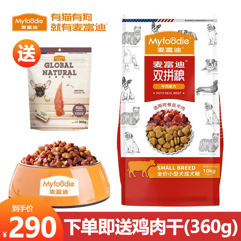 【不吃包退】麦富迪(Myfoodie)狗粮牛肉双拼天然挑嘴成年犬主粮泰迪金毛通用型 小型犬成犬粮10KG