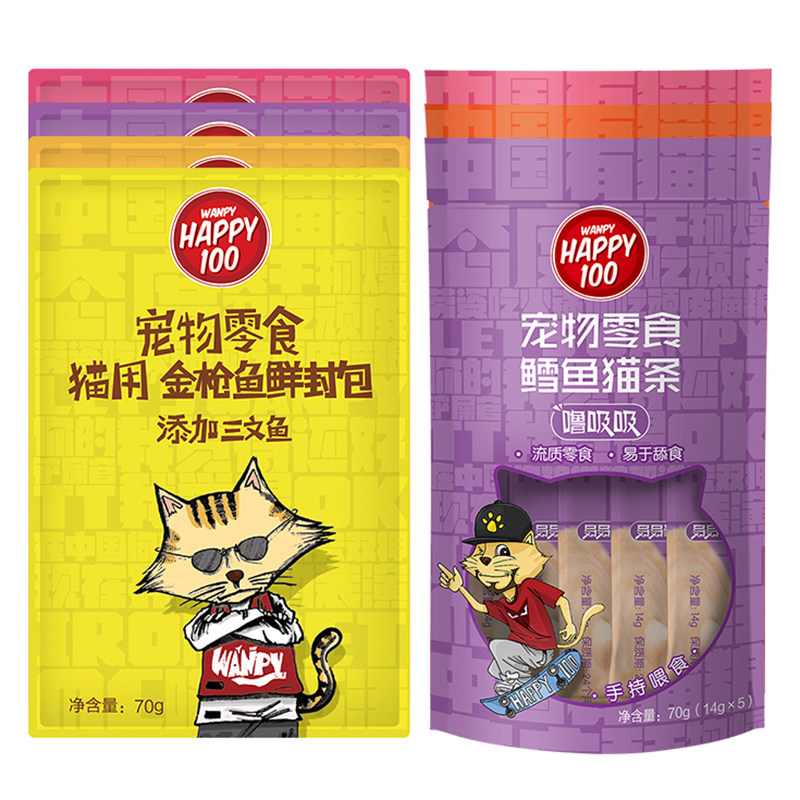 顽皮鲜封包70g*12包金枪鱼三文鱼鸡肉猫咪零食湿粮罐头happy100