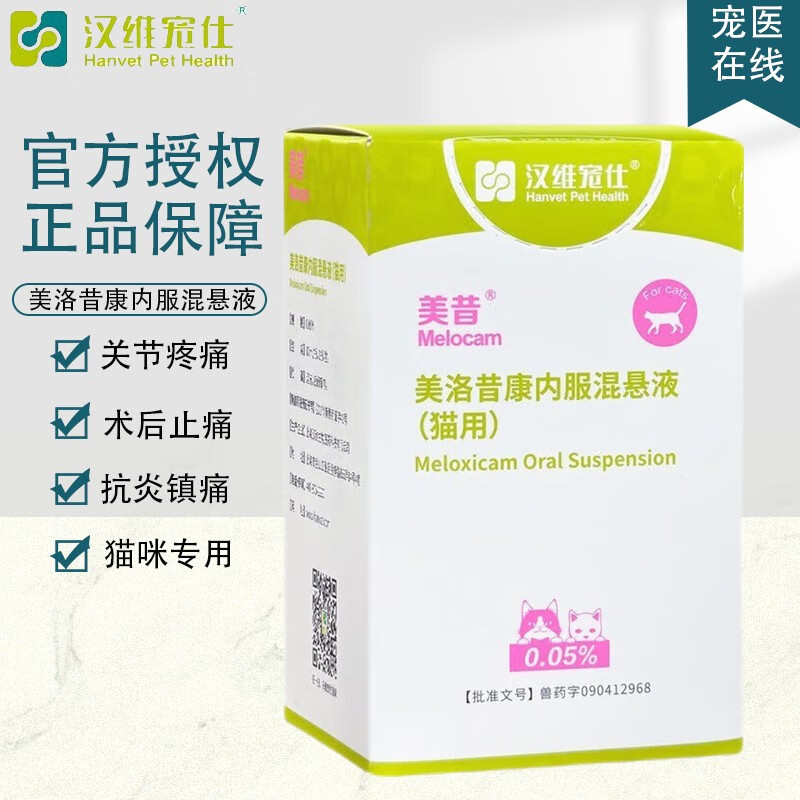 【官方授权】汉维宠仕美洛昔康口服液宠物狗狗猫咪术后消炎止痛骨折创伤关节炎症口服止疼止痛药 美洛昔康口服液【猫用10ml】