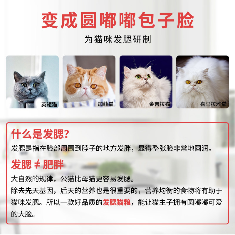 猫粮大颗粒发腮4到12个月增肥长肉英短大脸猫专用全价猫粮1.5kg
