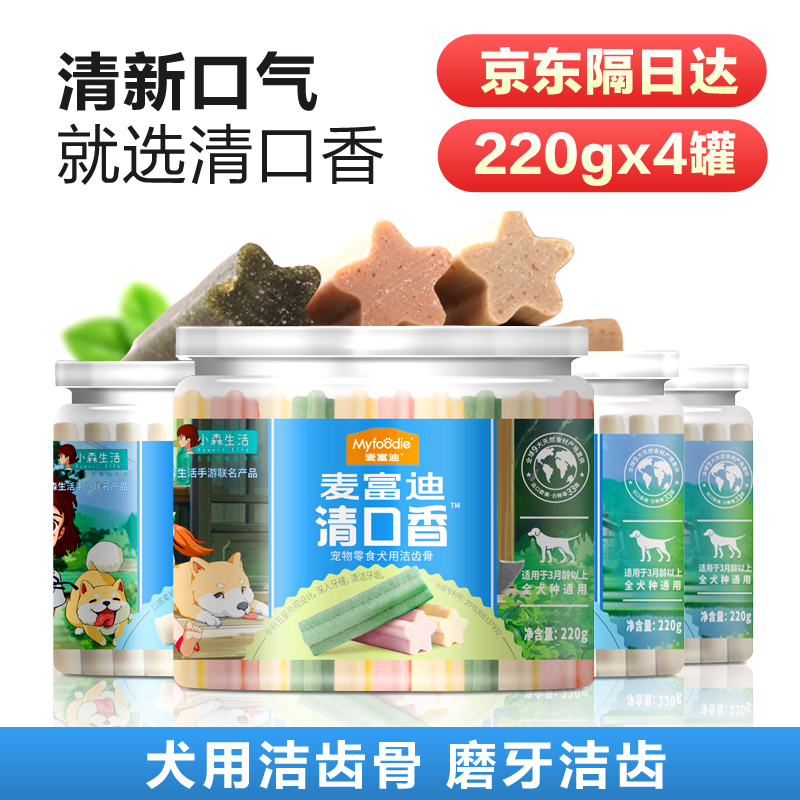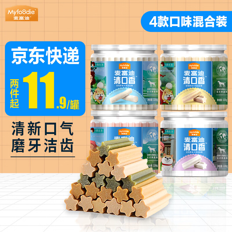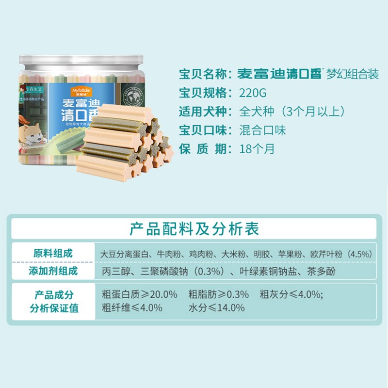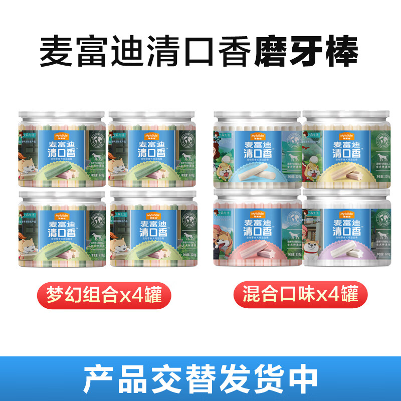 麦富迪清口香狗狗零食4罐装磨牙洁齿棒训练耐咬清新口气 混合装220g*4(含4口味)