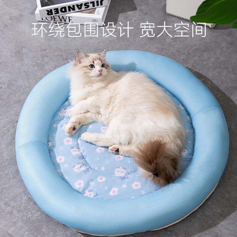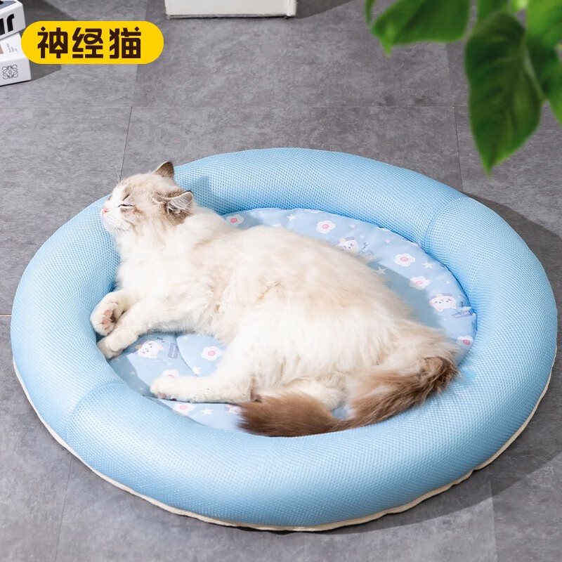 神经猫(shenjingmao)猫窝宠物四季通用透气猫屋猫床超级大宠物床狗窝狗床春天夏天 蓝色小猫L码-适合20斤内