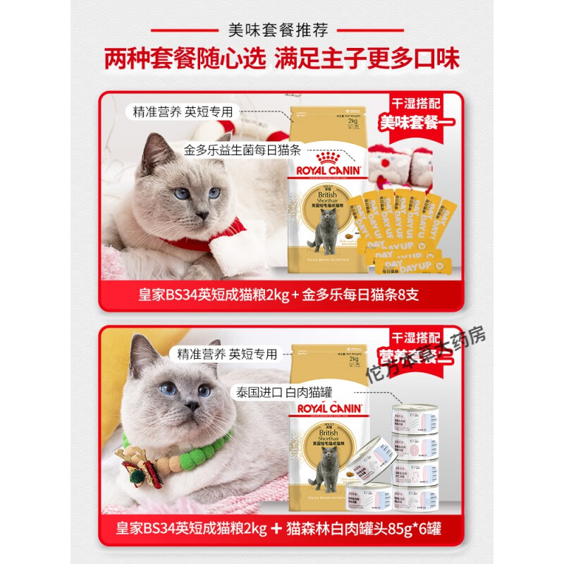 皇家猫粮BS34蓝猫专用猫粮 英短美短成猫通用粮全价2kg BS34英短成猫粮2kg 0kg (按选项规格拍下)