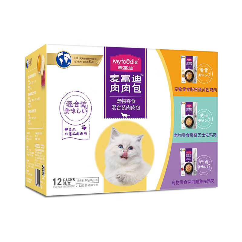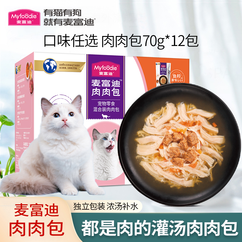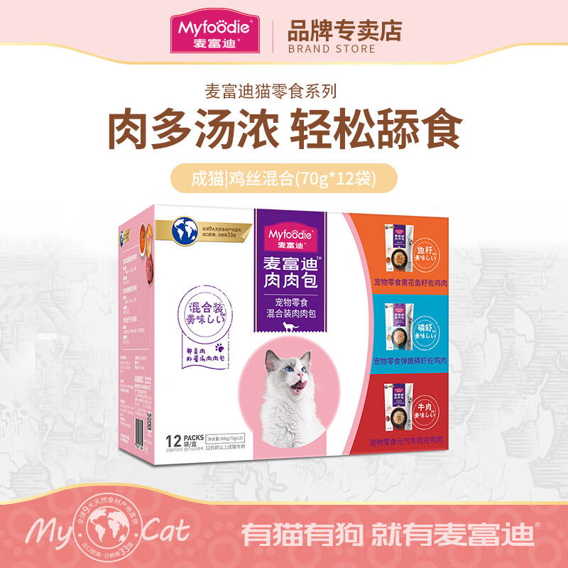 麦富迪(Myfoodie)麦富迪猫湿粮肉粒包 猫咪罐头全猫零食 幼猫鸡肉混合(70g*12袋) 成猫|鸡丝混合(70g*12袋)