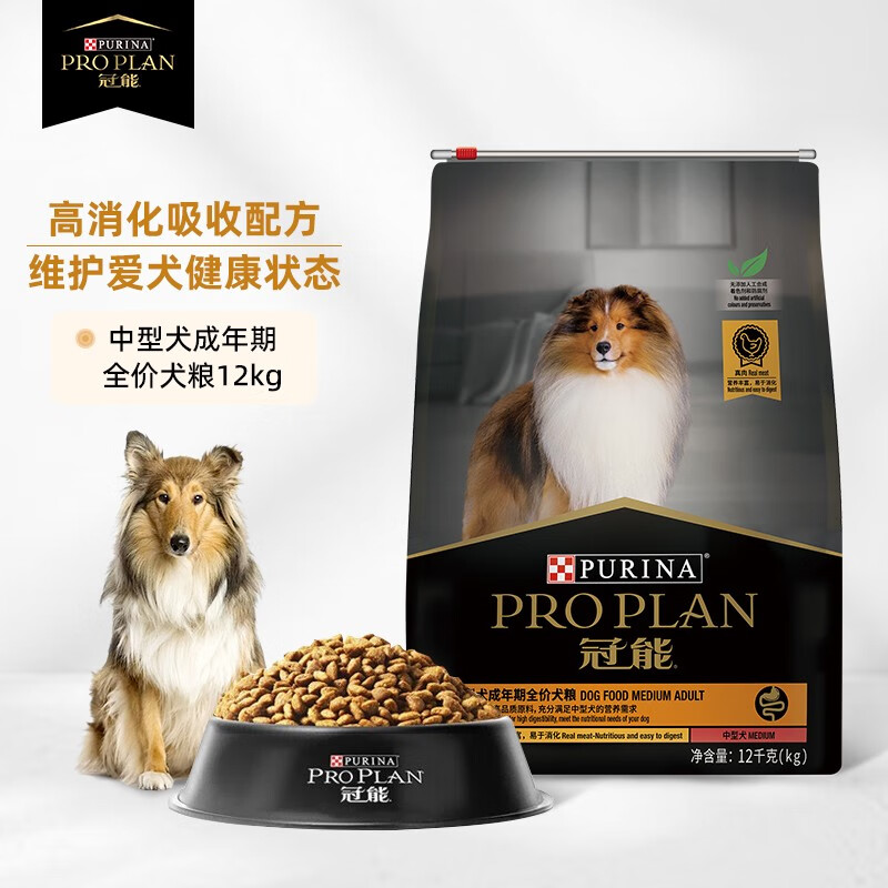 冠能(PRO PLAN)狗粮 中型犬成犬狗粮 萨摩哈士奇柴犬边牧通用型 12kg