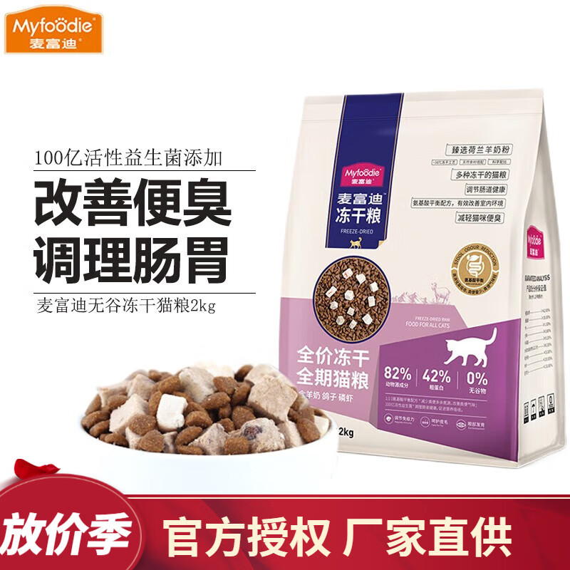 麦富迪(MYFOODIE)麦富迪猫粮全价天然无谷物冻干通用全期成猫幼猫调节肠胃提高免疫 全价冻干三拼全期猫粮2kg
