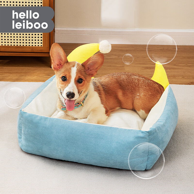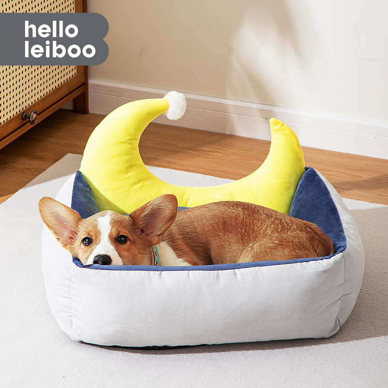 徕本(HELLOLEIBOO)狗窝四季通用冬季保暖可拆洗懒人沙发狗狗床宠物窝大型犬猫咪用品 灰浅蓝 麝皮绒-全件可拆洗 S-小型-10斤内