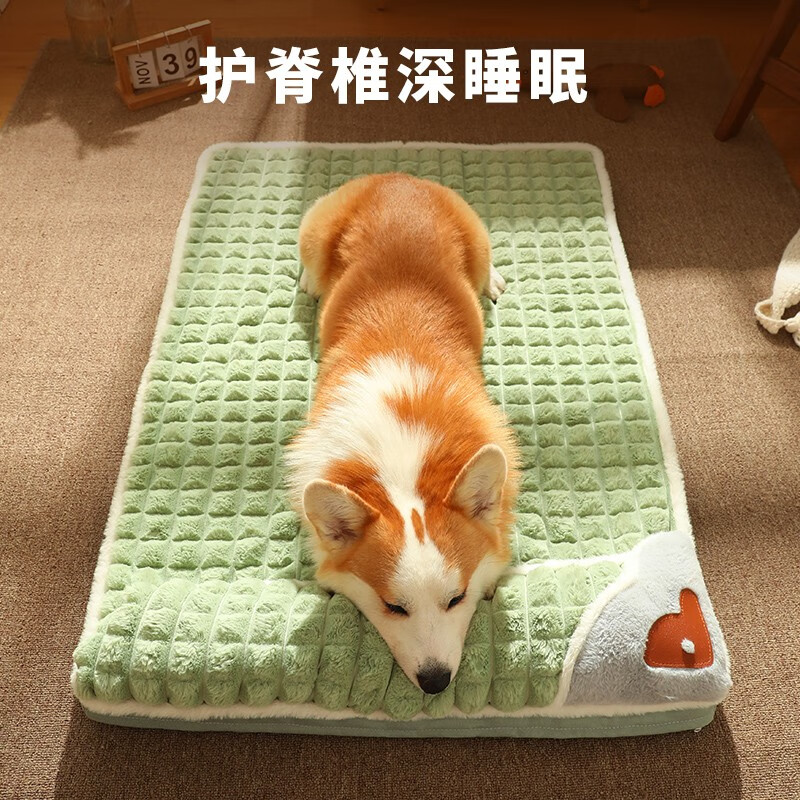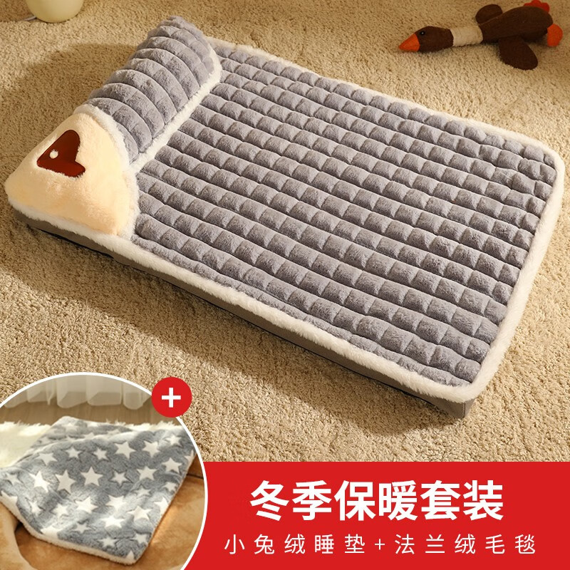 Kimpets狗垫子睡觉用冬季保暖可拆洗狗窝地垫狗狗垫子冬天睡垫宠物防撕咬 【保暖套装】加厚睡垫灰色 保暖毛毯 3XL码-60斤内【柔软靠枕 呵护颈椎】