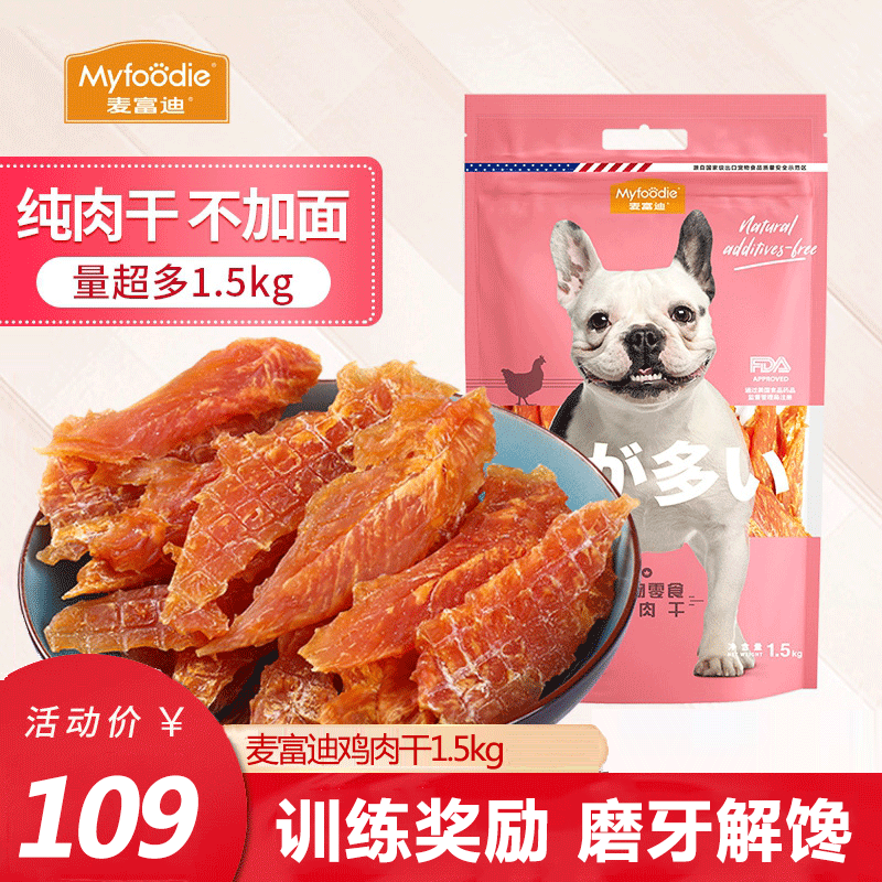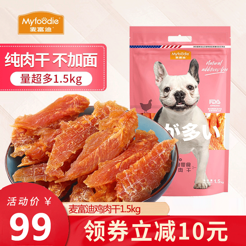 麦富迪狗零食鸡肉干1.5kg宠物鸡胸肉鸭肉条净重3斤大包装训犬零食大礼包 【大包3斤实惠装】鸡胸肉干1.5kg【到手109】