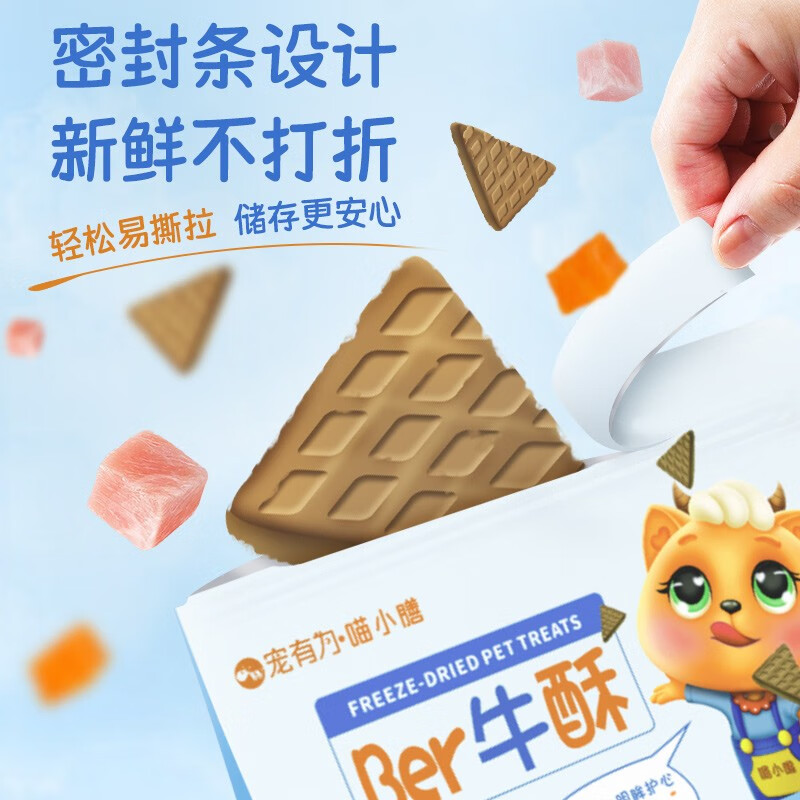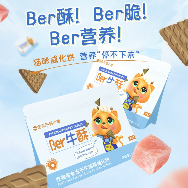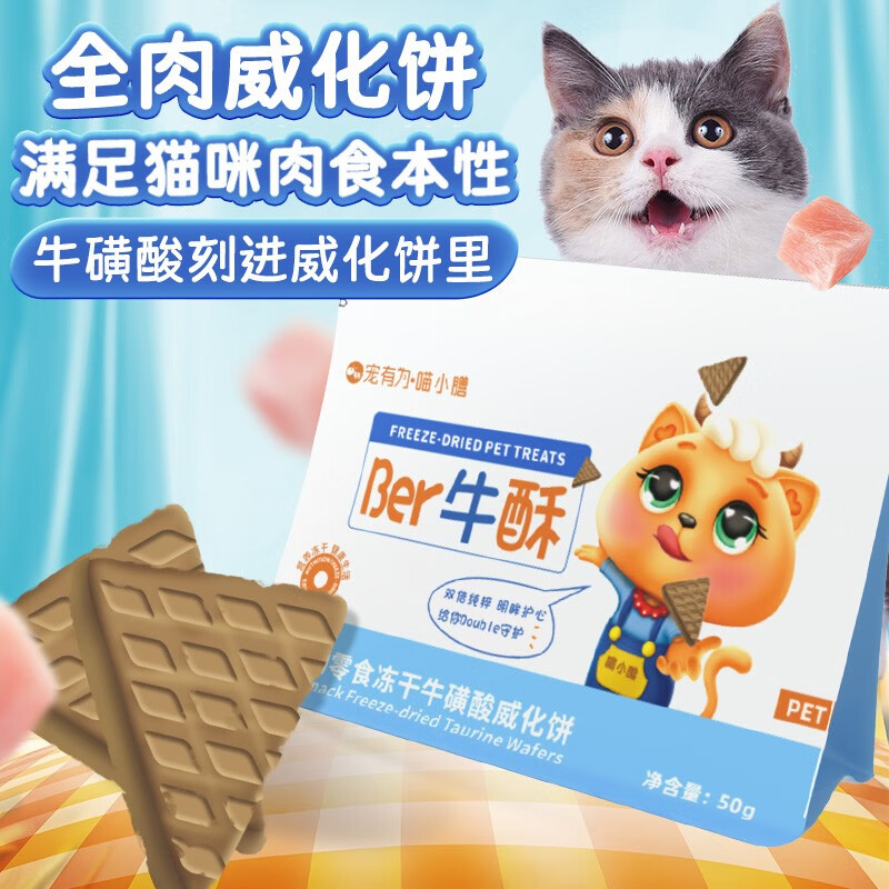 宠有为化毛猫咪零食猫草冻干鸡肉饼干吐毛排毛化毛球成幼猫咪磨牙洁齿即食已种好干吃酥脆泡水软糯补水 冻干牛磺酸威化饼-50g