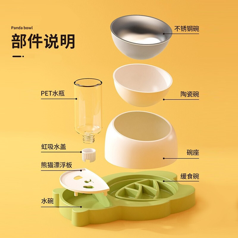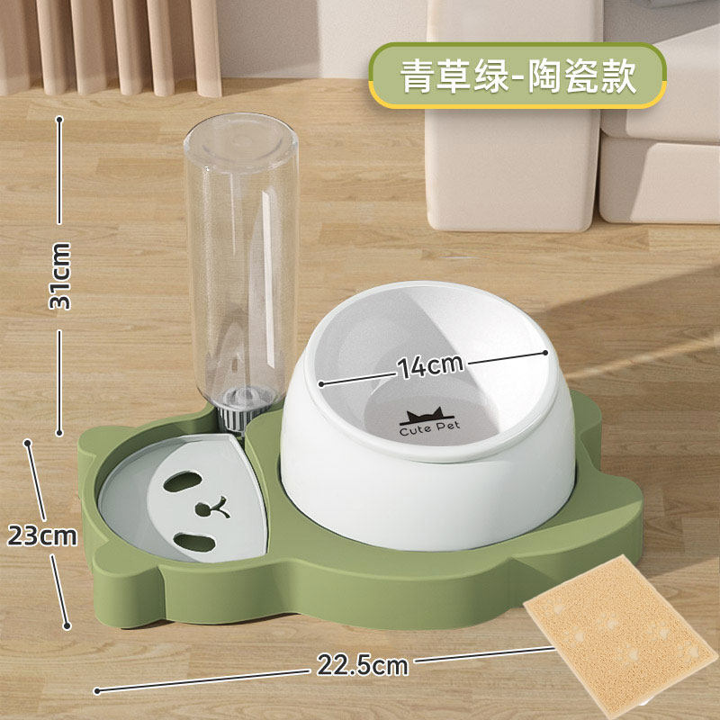 hoopet猫碗陶瓷猫咪饮水机狗猫食盆猫碗高脚护颈不锈钢自动续水猫粮碗大容量防打翻猫水机宠物双碗喂食 青草绿(陶瓷款) 餐垫