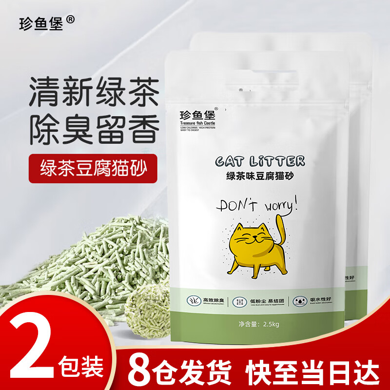 珍鱼堡猫砂豆腐猫砂5kg(2.5kg*2)绿茶香型结团融水好清理