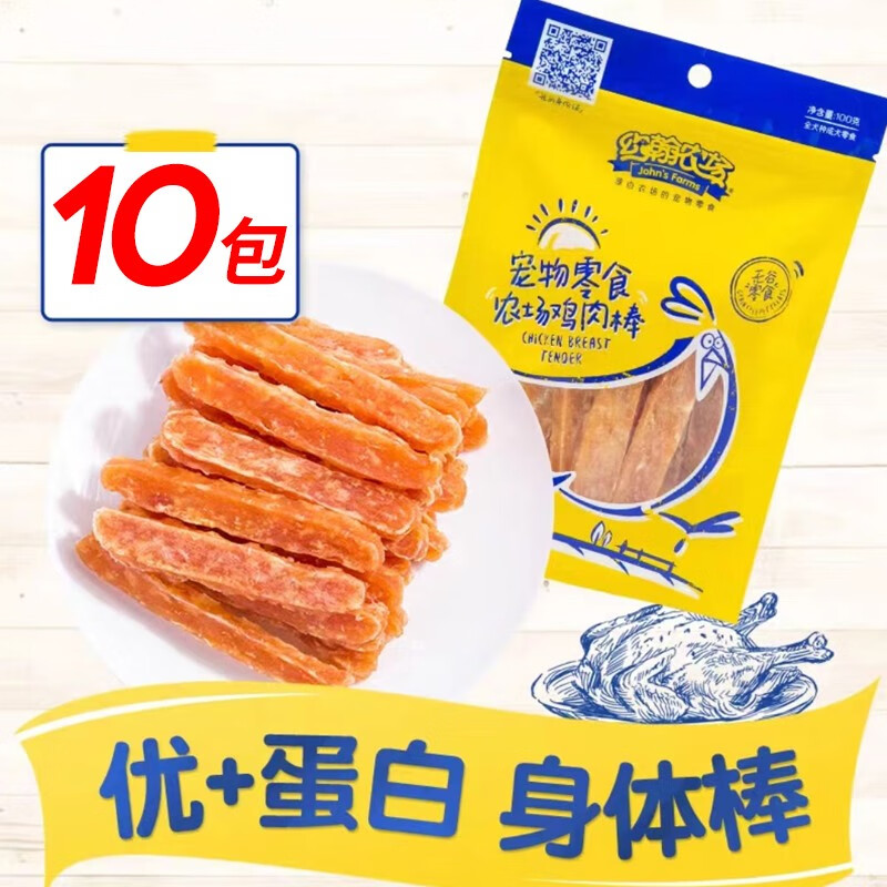 约翰农场小黄箱狗零食吃货箱鸡肉干成幼犬泰迪宠物训练奖励宠物零食10包 鸡肉棒100g*10包