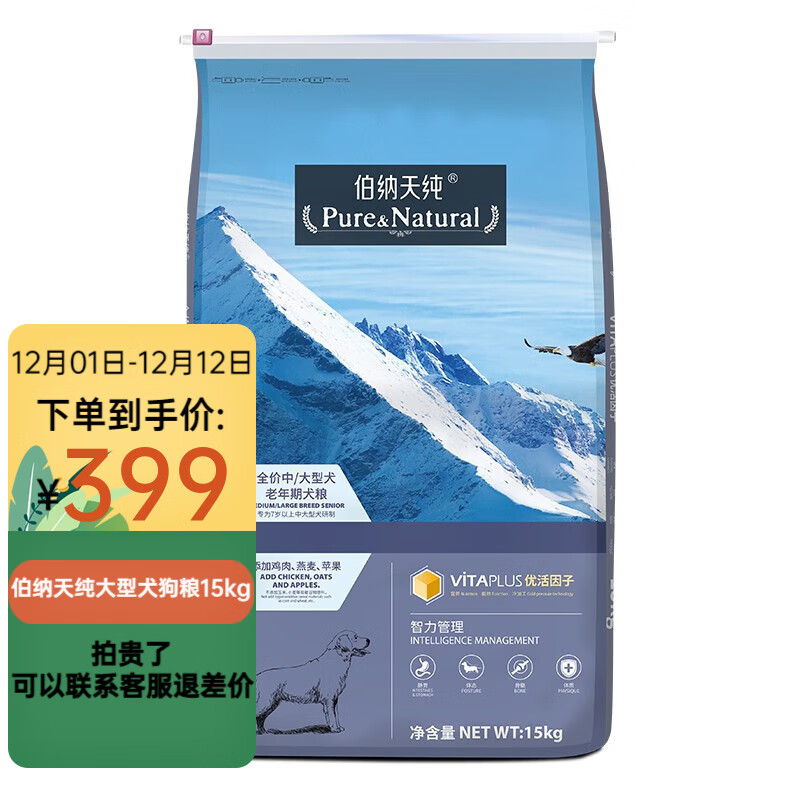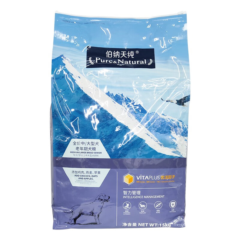 伯纳天纯狗粮15kg大型犬金毛拉布拉多边牧萨摩耶通用全价犬粮30斤 老年犬15kg【7岁以上】