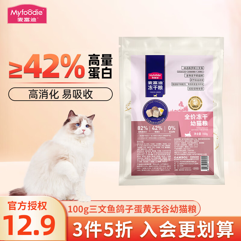 麦富迪猫粮 冻干猫粮成猫幼猫三拼无谷主食三文鱼鸽子鸡肉猫咪食品 100g试吃装 幼猫粮三文鱼鸽子
