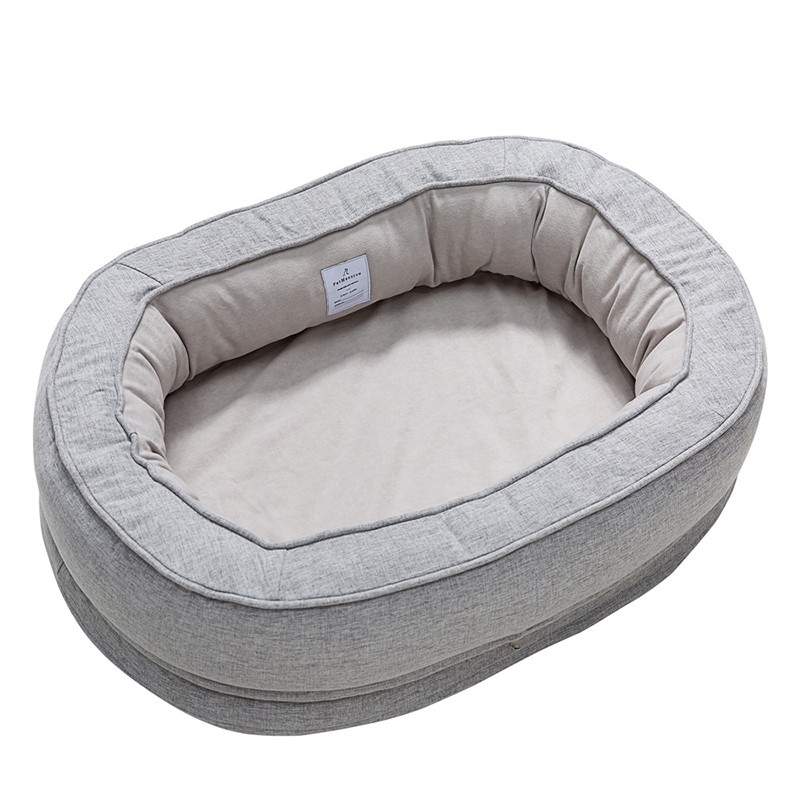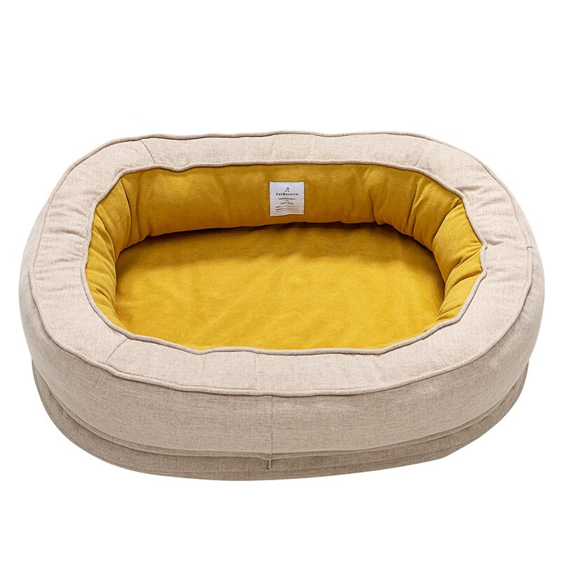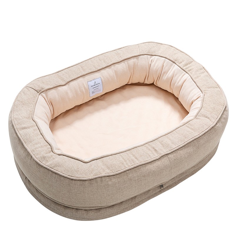 PetMassive狗窝四季通用可拆洗机洗宠物猫窝狗垫子狗窝室外柯基泰迪小大型犬 椭圆窝(亲肤耐磨耐咬)卡其双色 L:100*70*25