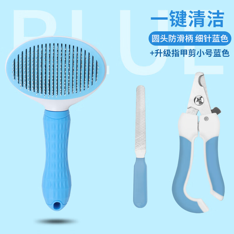 熹宠(XiChong)猫咪梳子狗毛梳去浮毛泰迪猫毛清理器狗狗自洁 钢针梳猫狗梳毛宠物用品 圆头防滑柄针梳【蓝色细针】 升级指甲剪小号蓝色