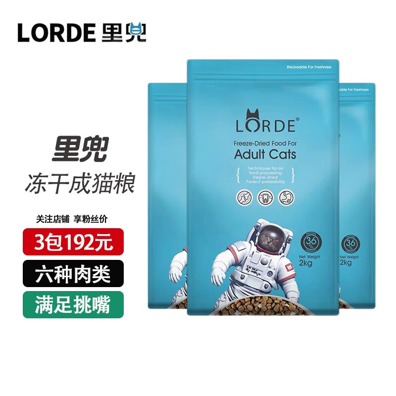 lorde里兜猫粮 冻干无谷天然粮 鸡肉鳕鱼 哺育系列 孕期哺乳期幼猫粮 成猫 2kg*3包