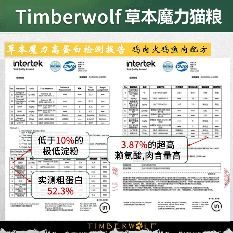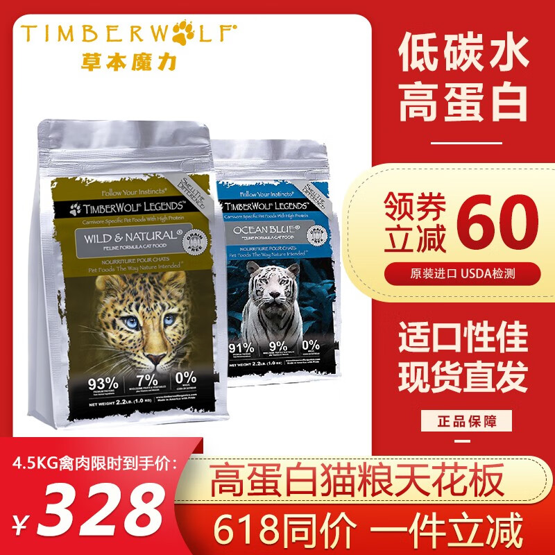 Timberwolf草本魔力猫粮成幼猫全阶段通用无谷高蛋白美国进口鸡肉鱼肉干粮 禽肉鸡肉配方4.5kg
