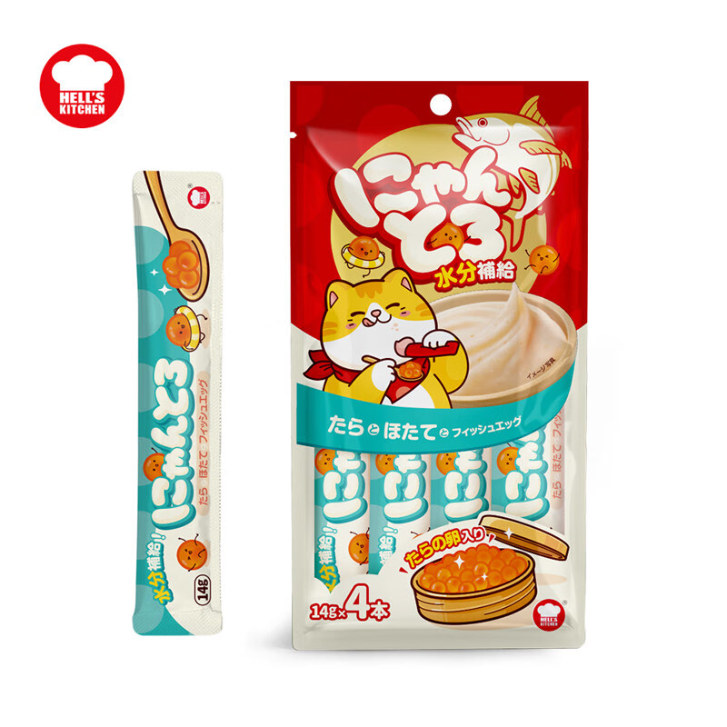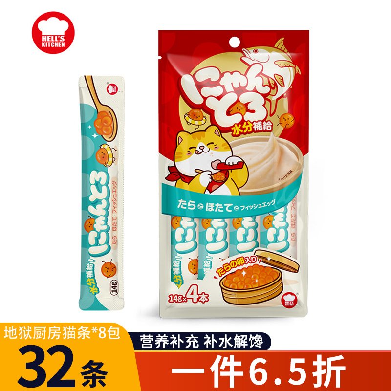 地狱厨房猫条猫零食补水湿粮成猫幼猫营养增肥发腮无诱食剂袋装金枪鱼三文鱼鱼籽味猫酱鲜美 鳕鱼扇贝鱼籽*8包(32条)