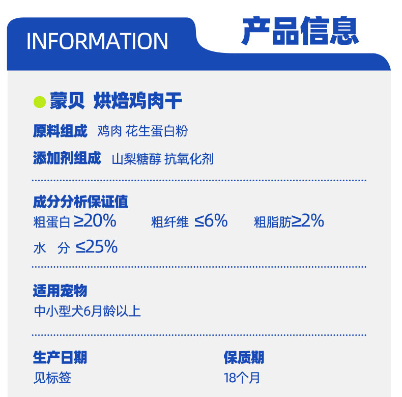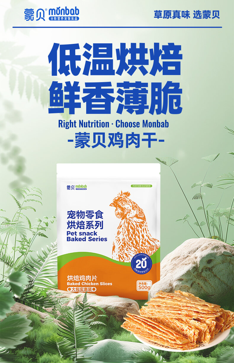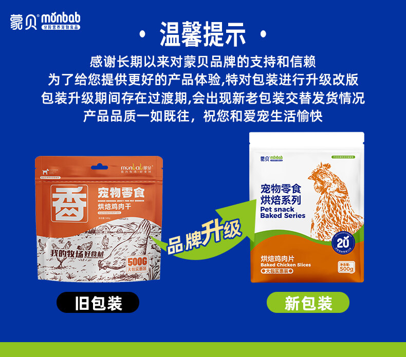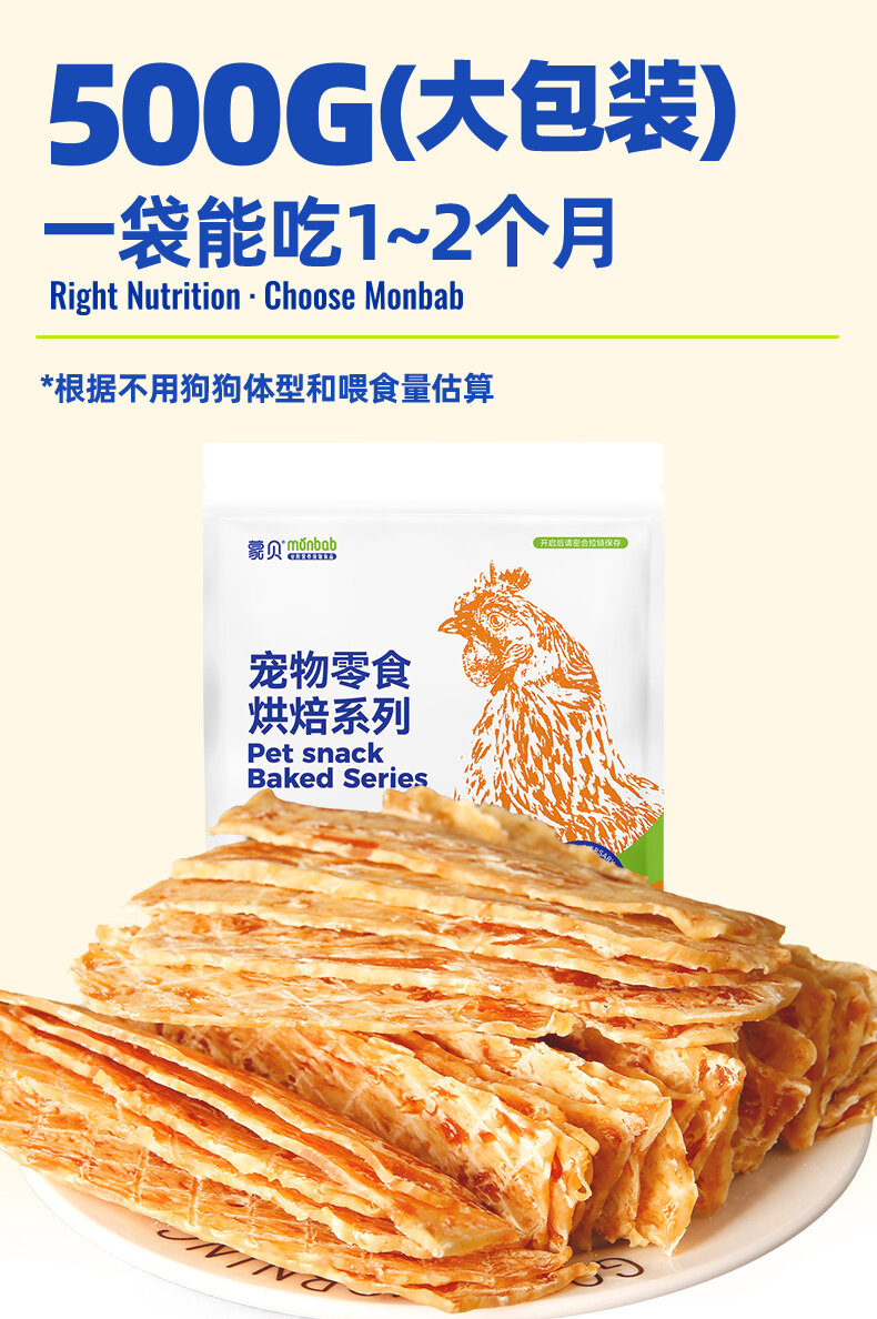 蒙贝 犬用宠物零食狗狗烘焙鸡肉干500g