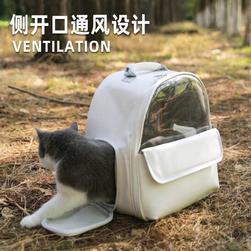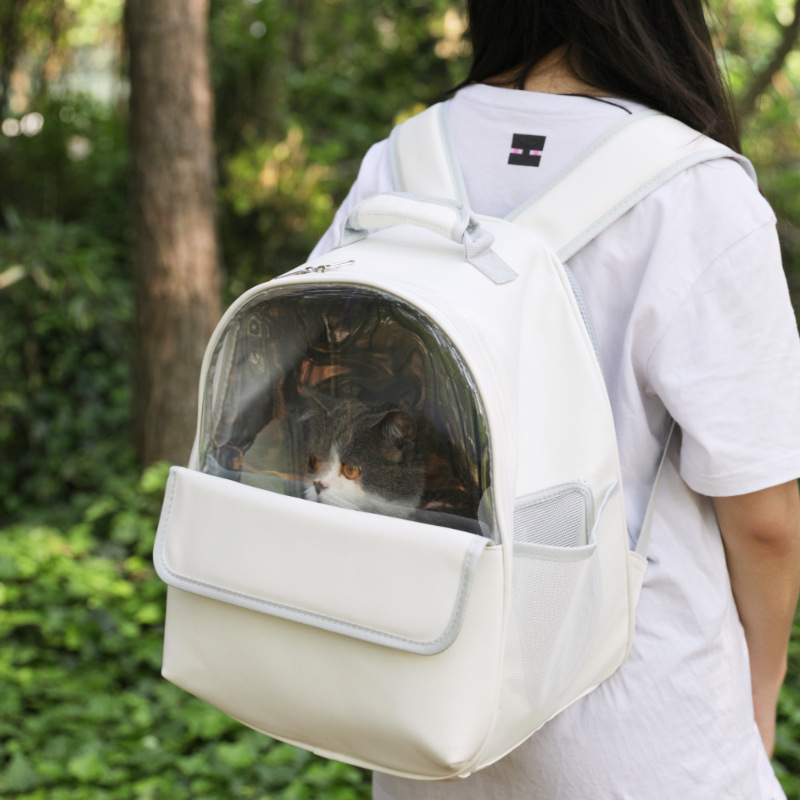 外出透明便携双肩包 猫包大容量宠物包外出透气狗包 宠物用品 白色