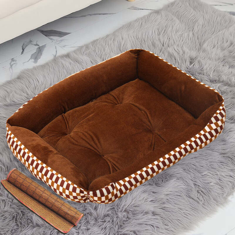 狗窝四季通用狗狗垫子泰迪柯基小型大型犬宠物用品床猫窝冬天保暖 咖啡格子 凉席 58*45CM(12斤内)