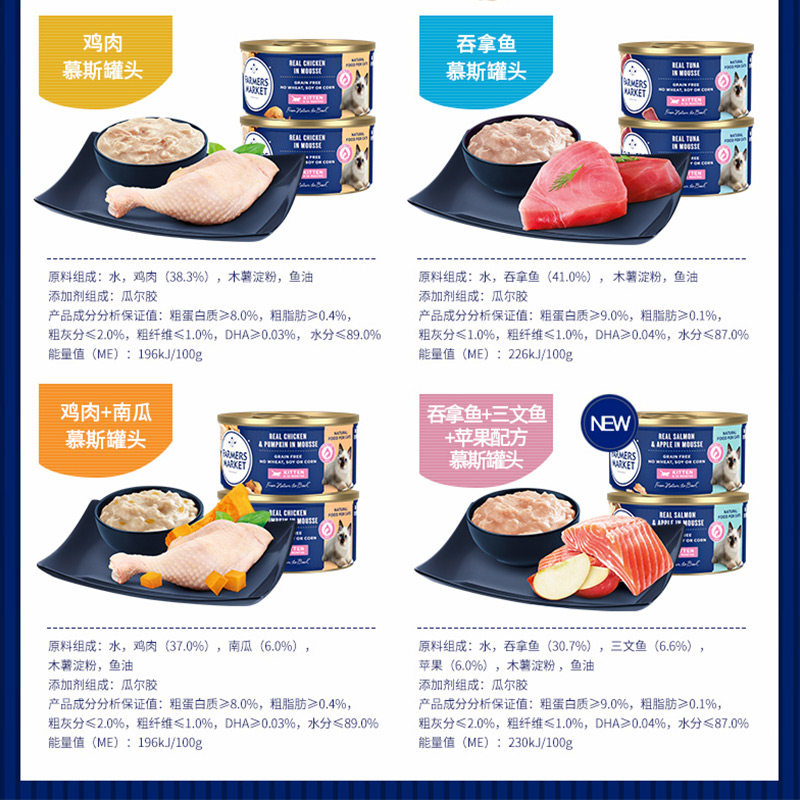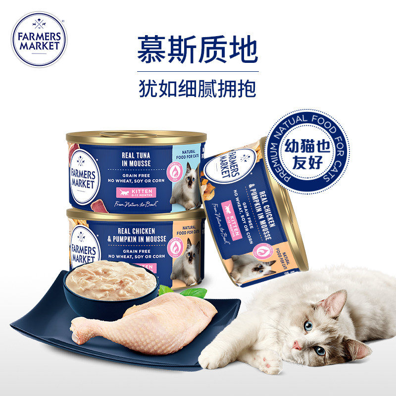 【柿子菌】Farmers Market蓝宝食 幼猫慕斯罐头0-12月小猫孕猫80g