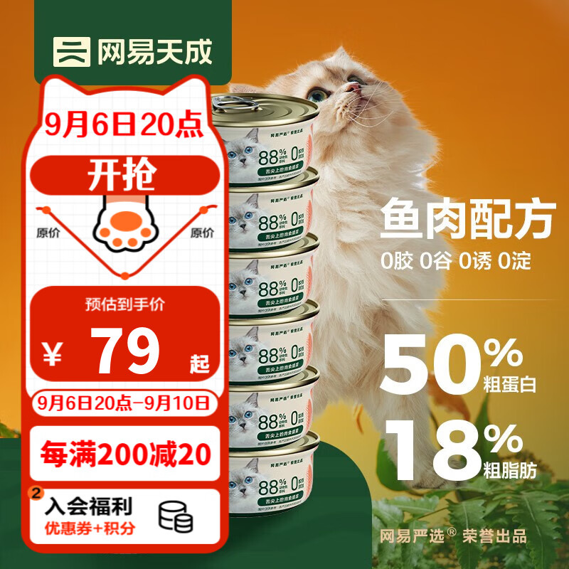 网易天成宠物猫罐头全价猫用主食罐猫粮猫湿粮美味 好吸收成猫幼猫主食 三文鱼罐85g*12罐