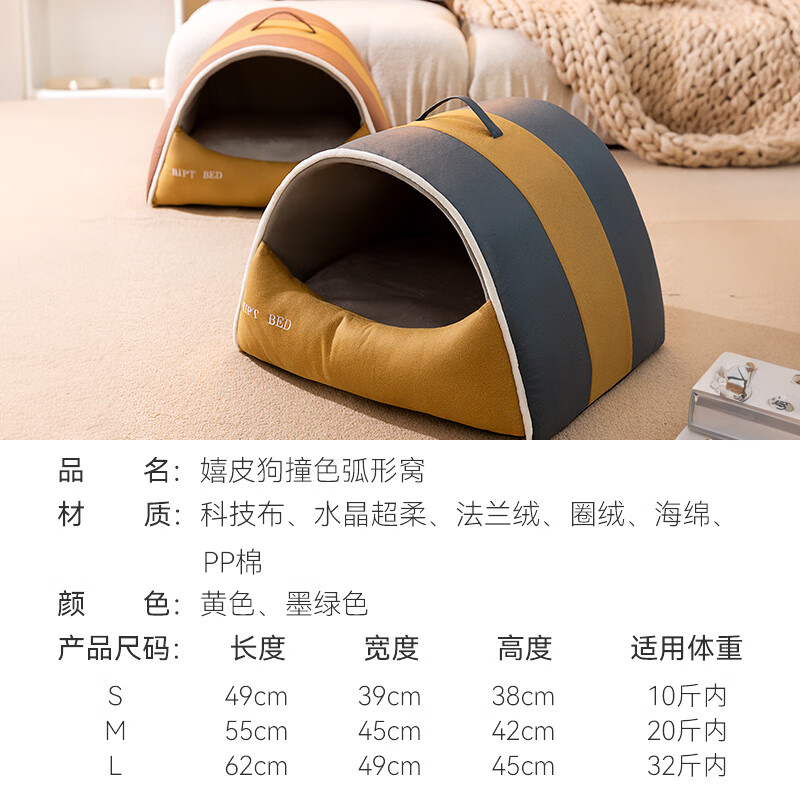 嬉皮狗(hipidog)猫窝冬季保暖狗窝秋冬季狗狗撞色狗窝小型犬猫咪冬天宠物窝蒙古包 绿色 L(建议体重32斤内)