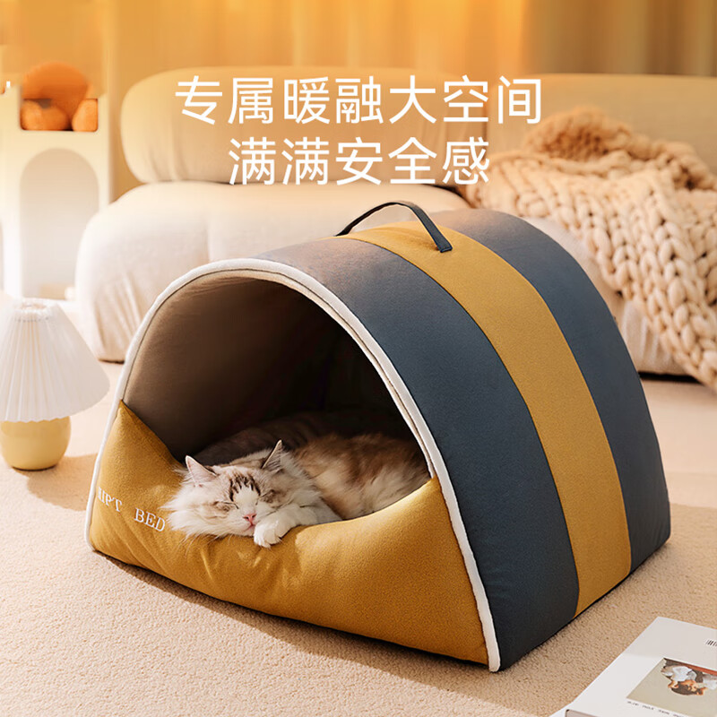 q网红猫窝冬季保暖泰迪狗窝冬天封闭式猫咪四季通用宠物可拆洗用品地狼 【毛绒蕾丝帐篷】小号 送猫咪除蚤项圈