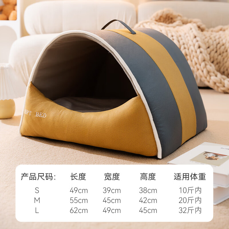 狗窝猫窝房子型四季通用可拆洗泰迪小型犬冬季保暖宠物窝狗屋猫屋 韩版猫窝【灰色】 XL-建议40斤内