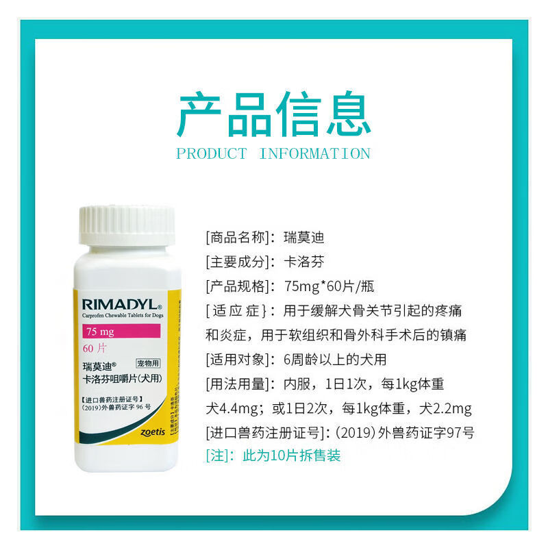 【顺丰空运】辉瑞瑞莫迪止疼药狗狗关节止疼消炎犬骨折术后瘤肿宠物止痛辉瑞 瑞莫迪75mg 10粒(拆售)