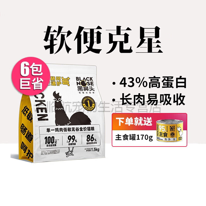 黑鼻头低敏无谷全价猫粮冻干高蛋白成猫幼猫全阶段益生菌软便克星 鸡肉味 1.5kg 单包